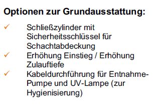 Sonderanstrichfür MONOLITH-Behälter, lebensmittelecht, beständig gegen den Säureangriff durch weiches Wasser, erhöht die Lebensdauer des Schachtes beträchtlich. Edelstahl- oder Kunststoffleitern |